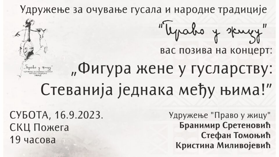 Пројекат је посвећен историјској линији жена у гусларству, са акцентом на Стеванију Драгашевић као прву и једнаку гусларку међу њима.