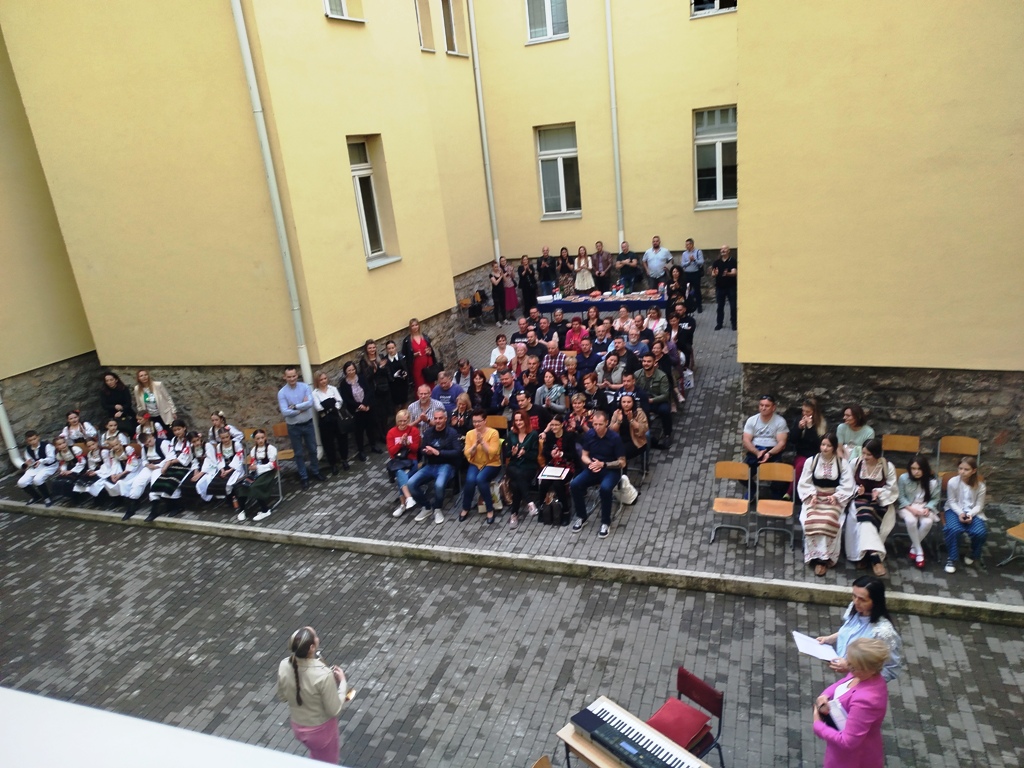 Након срдачне добродошлице, традиоционалне погаче и соли, које су послужиле дивне ученице у народној ношњи, организован је богат и интересантан културно-уметнички програм у унутрашњем дворишту школе. Програм је почео извођењем српске химне на труби, коју је свирала ученица школе ,,Душан Јерковић“. Гости из Словеније уживали су у традиционалним фолклорним играма, плесу наших предшколаца, песми хора ,,Пчелице“, као и певању етно песама. Кроз презентацију упознали су наш крај и нашу школу, као и знаменитости и посебности овог дела Србије. Многобројни родитељи повели су коло, коме су се придружили и домаћини и гости.