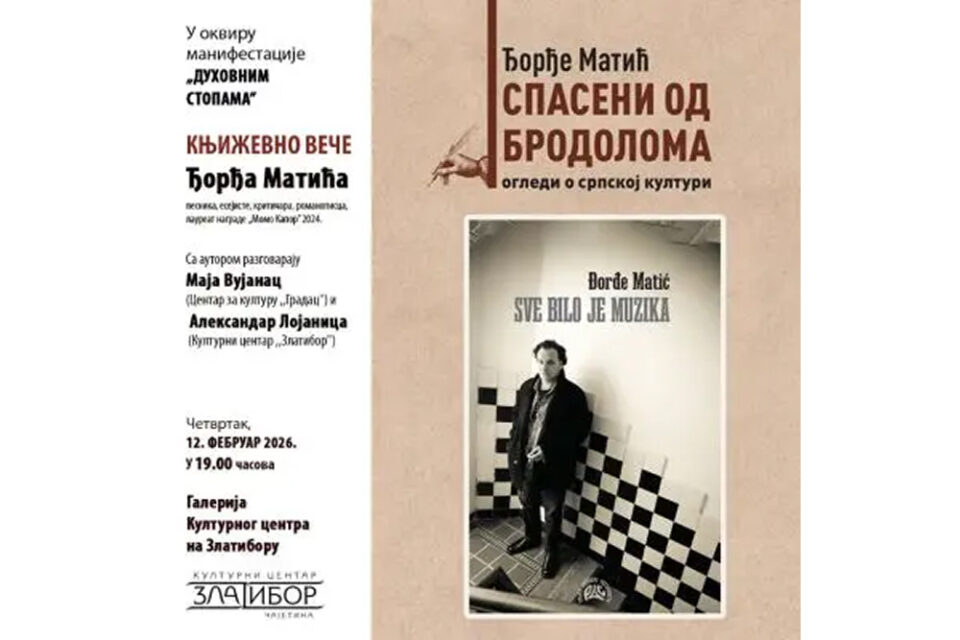 Маја Вујанац из Центра за културу „Градац” и Александар Лојаница из Културног центра „Златибор” разговараће са аутором о књигама „Спасени од бродолома” и „Све било је музика”. Обе књиге представљају збирке есеја, којима нас Матић подсећа на важне догађаје и уметнике који су оставили неизбрисив траг у културном простору бивше Југославије.