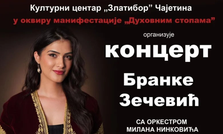 У оквиру манифестације ,,Духовним стопама“, концерт Бранке Зечевић, етно-појца, са оркестром Милана Нинковића, биће одржан у среду, 14. јануара, на Краљевом тргу, на Златибору.