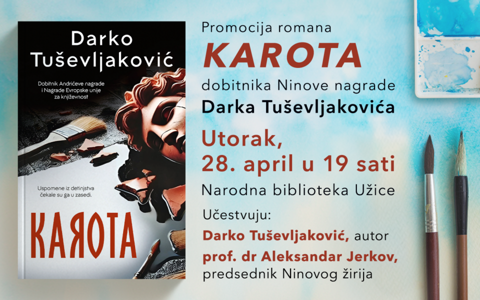 Народна библиотека Ужице организује промоцију романа „Карота” Дарка Тушевљаковића, награђеног Ниновом наградом за најбољи роман у 2025. години.