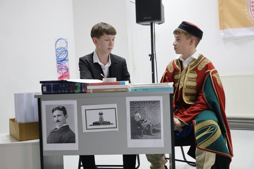 Програм је започео видео-обраћањем глумца Џека Димића, српског порекла из Сједињених Америчких Држава, након чега су уследили стихови из „Луче микрокозме“ и наступ гуслара Лазара Витомира са одломцима из „Горског вијенца“. Уметнички део настављен је извођењем драмског комада у интерпретацији Етно-секције из Пожеге, кроз сцене Теслиног детињства, сусрета са Петром Перуновићем Перуном у Америци, Перуновог гуслања у Прагу, као и поетског сећања на Лазу Костића и Ленку Дунђерски.