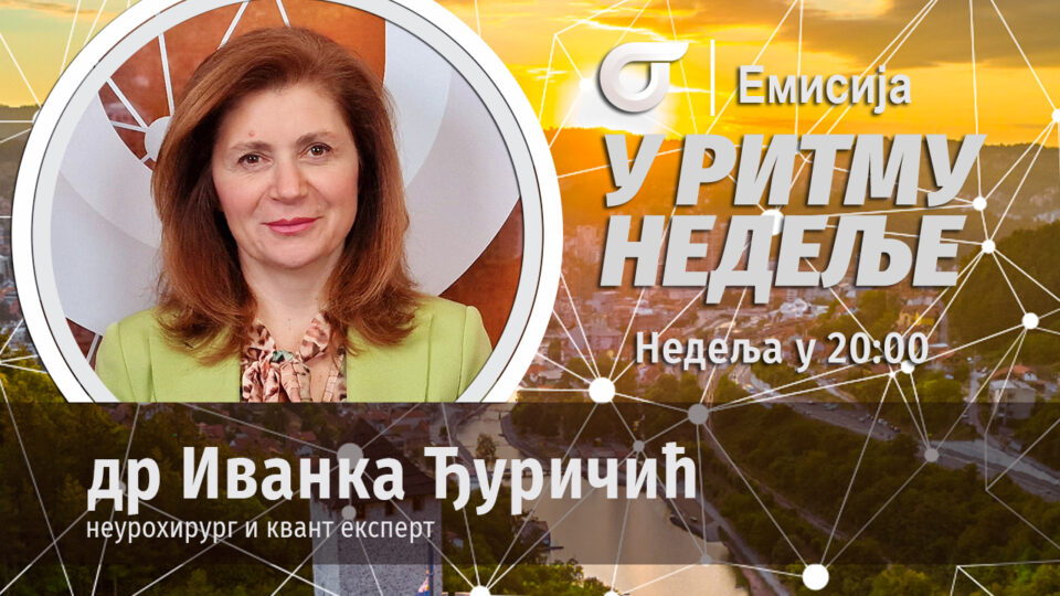 Гошћа следеће емисије У ритму недеље је др Иванка Ђуричић неурохирург, дама која је годинама радила са најтежим и хитним случајевима у Здравственом центру Ужице и која се због личног сусрета са болешћу одлучила да посвети себи и свом здрављу и поред класичне потражи одговоре и у другим облицима медицине.