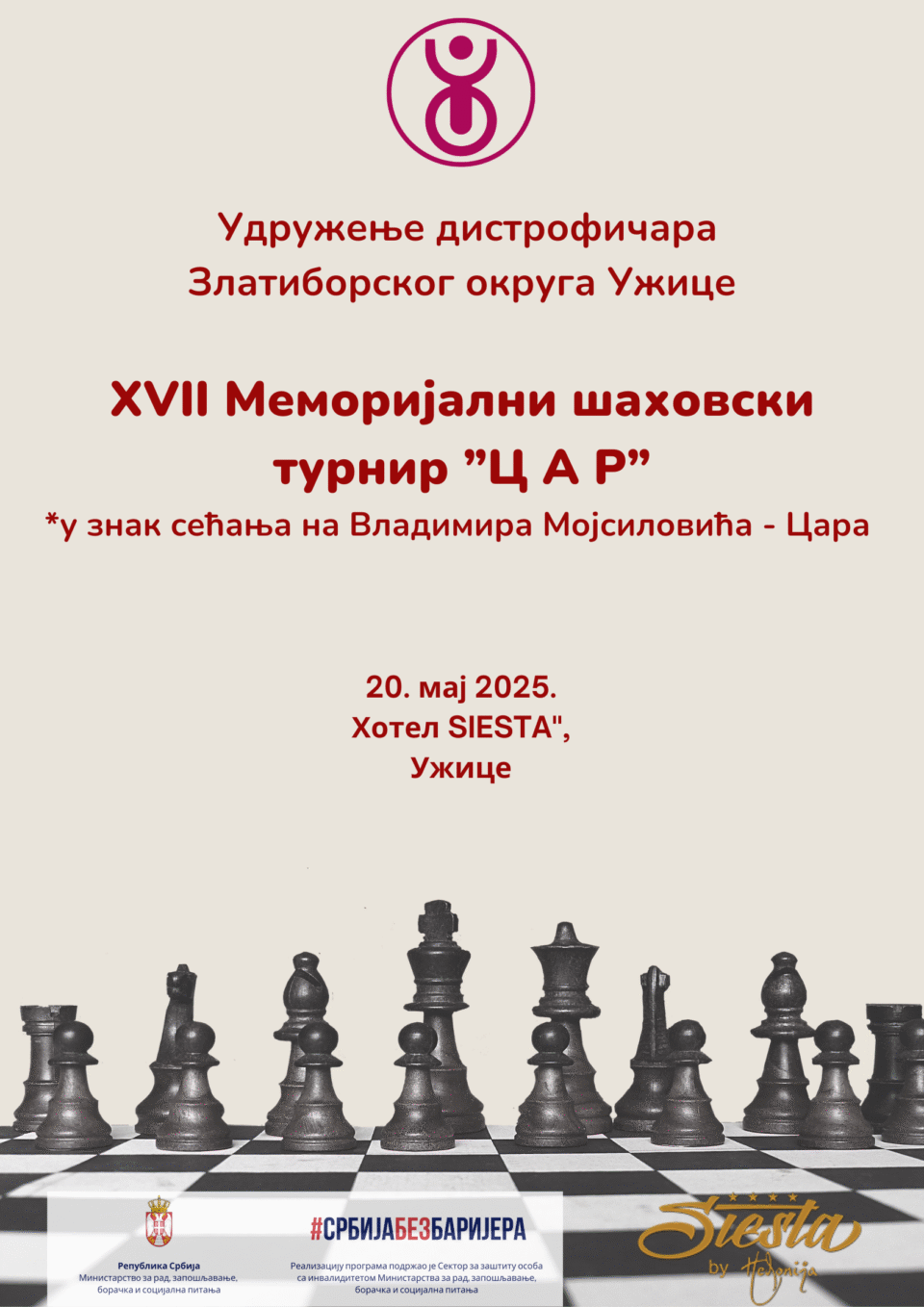 Удружење дистрофичара Златиборског округа Ужице организује 17. Меморијални шаховски турнир „ЦАР“, установљен У знак сећања на Владимира Мојсиловића — Цара. Драгог пријатеља, истакнутог члана, али и врсног шахисту.