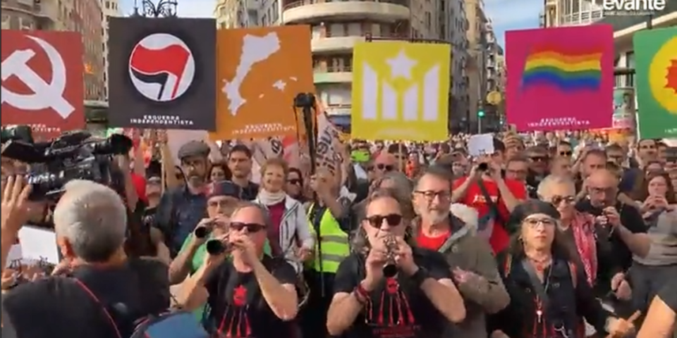 Како преноси шпански портал ,,ОКДиарио“, на манифестацији одржаној 25. априла на тргу Сант Агустí у Валенсији окупиле су се хиљаде присталица каталонског сепаратизма. Учесници су носили заставе Валенсијске заједнице, каталонске естеладе и палестинске заставе, док су узвикивали пароле у одбрану каталноског језика.