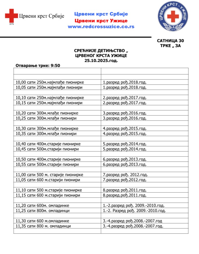 Трка за срећније детињство је најмасовнија и најшире прихваћена рекреативно хуманитарна активност националног друштва Црвеног крста Србије. Усмерена ка остваривању трајног циља – непрекидним подмлађивањем и омасовљавањем волонтера Црвеног крста . Масовним учешћем у Трци деца и млади показују своје опредељење ка здравом начину живота и највишим хуманим вредностима. Црвени крст Ужице у оквиру дана града организује тридесет трећу трку заједно са