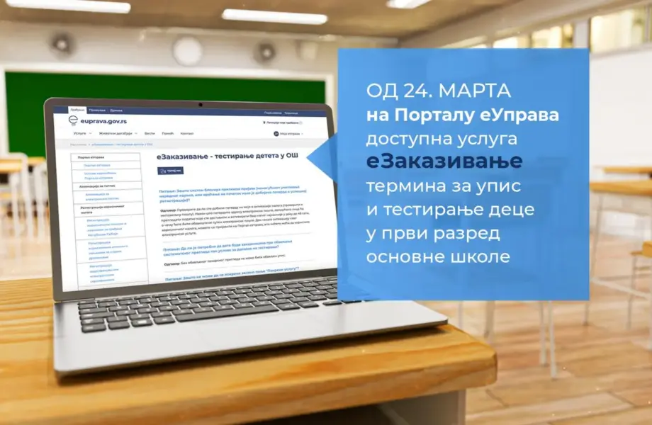 Ово је шеста година заредом да родитељи имају могућност да термин за упис и тестирање будућих првака закажу захваљујући услузи на Порталу еУправа.
