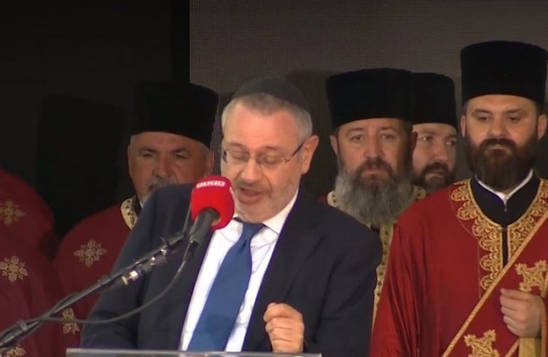 После патријарха на Хебрејском се обратио рабин Исак Асиел, а затим је, на српском, подсетио на људске приче и страдања у Новом Саду, Старој Градишки, Треблинки…